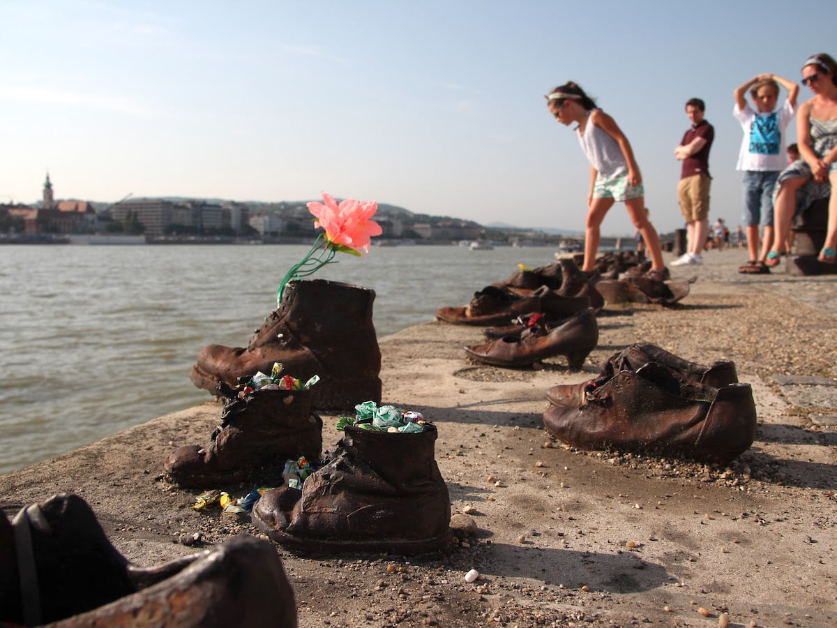 Pe malul budapestan al Dunării, la câteva sute de metri de spectaculosul Parlament Ungar, se află unul dintre cele mai emoționante monumente memoriale dedicate victimelor ideologiei naziste.